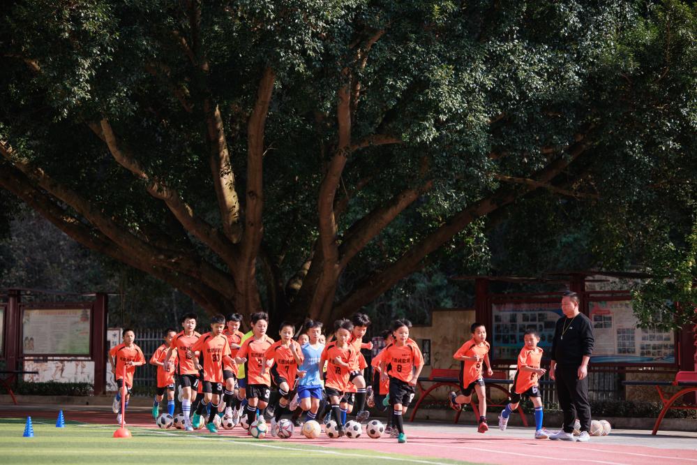 作为一所大山深处的少数民族地区中心校,以前这里的孩子能够外出接受专业足球训练的机会较少。如今“村超”携手英超,也让山区的孩子们有机会接触更为专业化的足球训练。