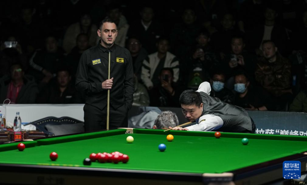1月1日,罗尼·奥沙利文(右)和丁俊晖在比赛中。新华社记者 晋美多吉 摄