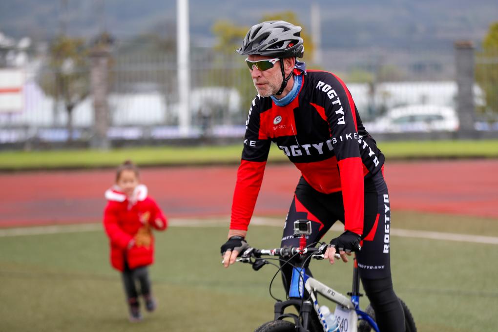 2023年3月25日,阿明在2023中国黄山(黟县)国际自行车公开赛男子山地赛公开组比赛前。新华社记者张晨摄