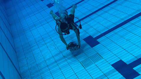 在杭州寻找潜水用品店,租用、组装器材……当我们穿戴成“蛙人”跃入水中时,泳池边的工作人员还以为我们是组委会聘请的专业技术团队。