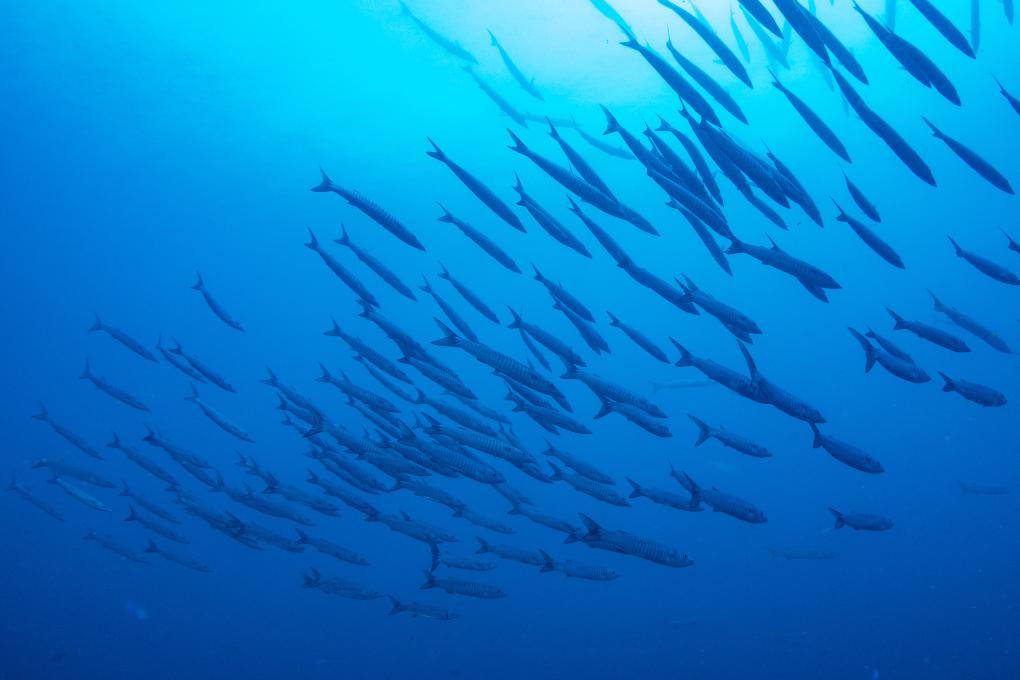 2020年12月22日在印度尼西亚四王群岛海域拍摄的一个海狼鱼群。
