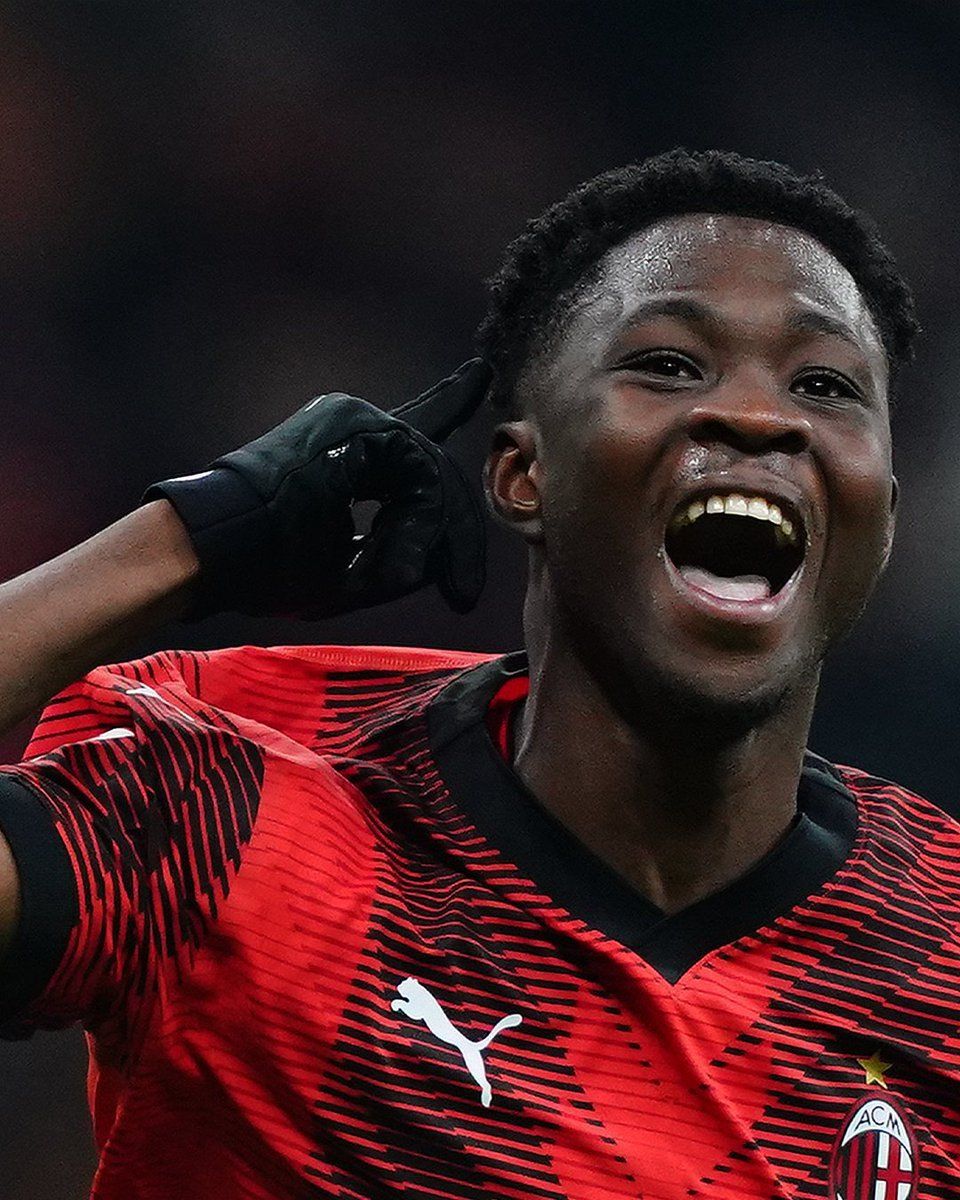 1月2日,AC米兰球员特拉雷奥庆祝进球。图片来自意甲联赛官方社交媒体账号