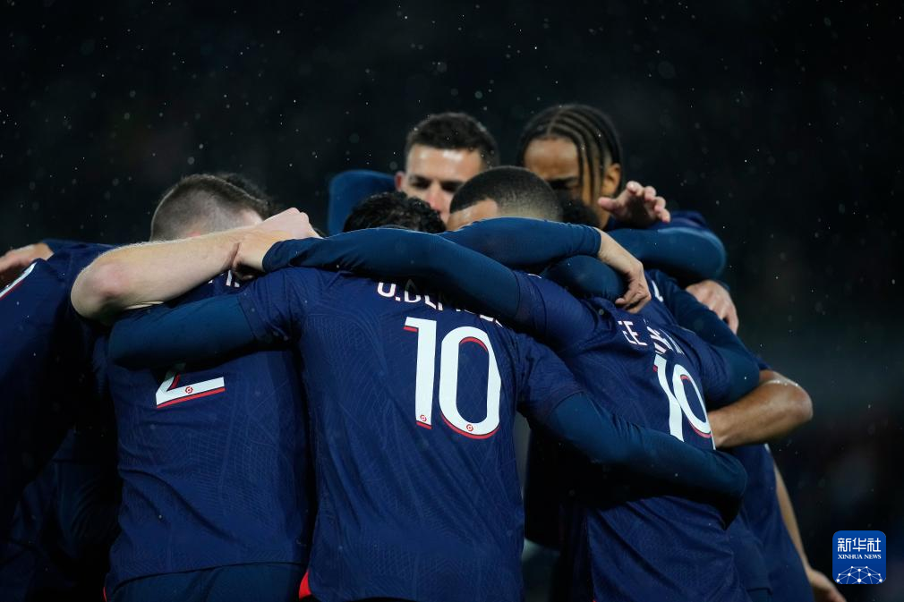 1月3日,巴黎圣日耳曼队球员庆祝进球。新华社发(戈兰·热尔沃摄)