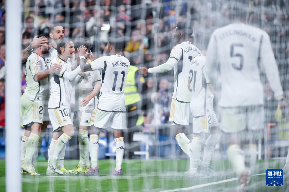 1月3日,皇家马德里队球员在比赛中庆祝进球。新华社发(古斯塔沃·巴连特摄)