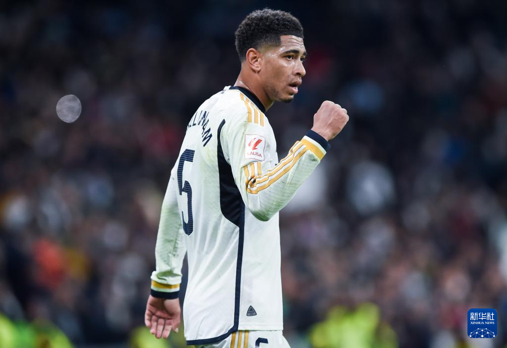 1月3日,皇家马德里队球员贝林厄姆在比赛后庆祝胜利。新华社发(古斯塔沃·巴连特摄)