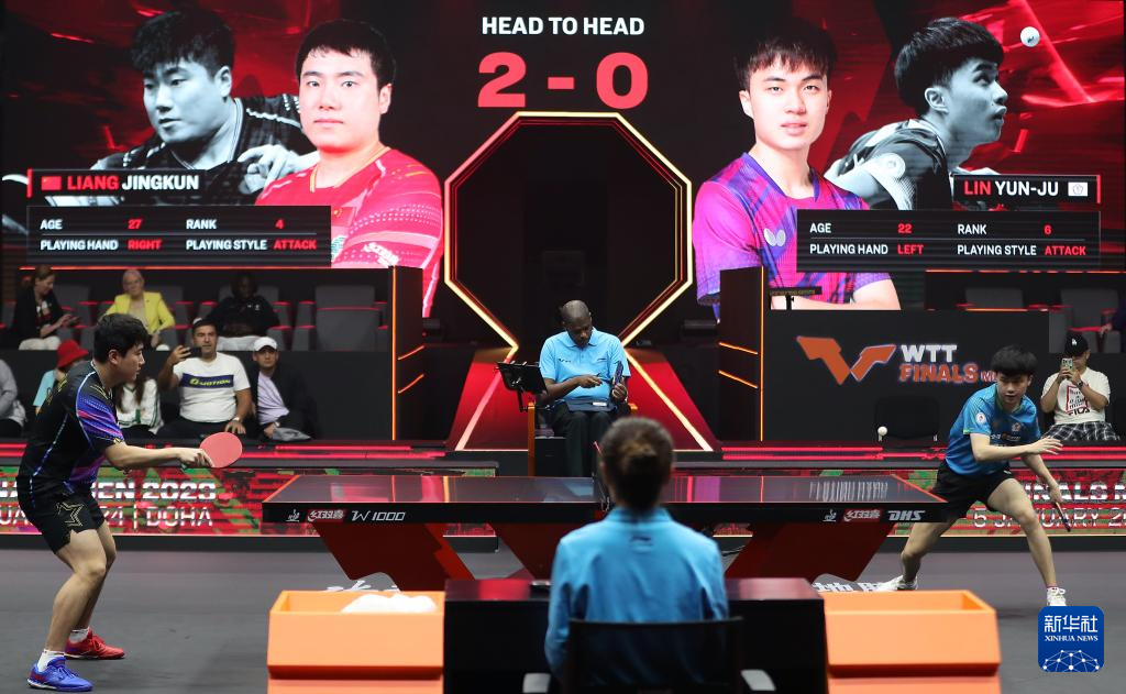 当日,在卡塔尔多哈举行的2023年世界乒乓球职业大联盟(WTT)男子总决赛首轮比赛中,中国选手梁靖崑以3比1战胜中国台北选手林昀儒,晋级八强。