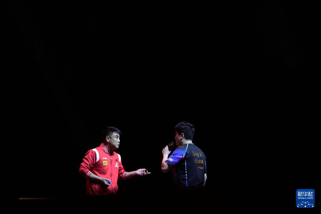 1月3日,梁靖崑(右)在比赛中接受教练王皓的指导。新华社记者 王东震 摄