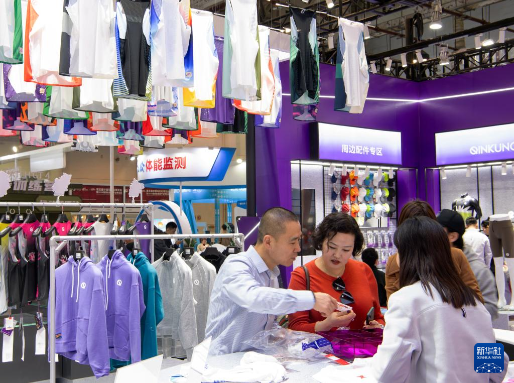 1月4日,观众在博览会现场挑选体育运动服装。新华社记者 魏培全 摄