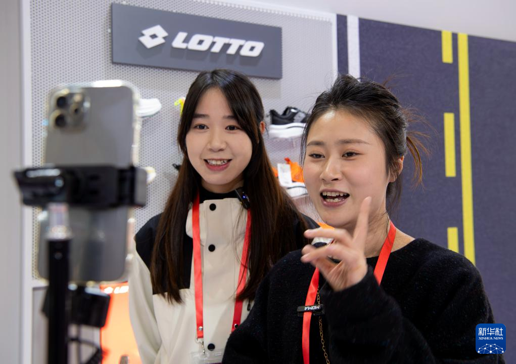 1月4日,在博览会现场,一家销售商通过电商平台销售产品。新华社记者 魏培全 摄