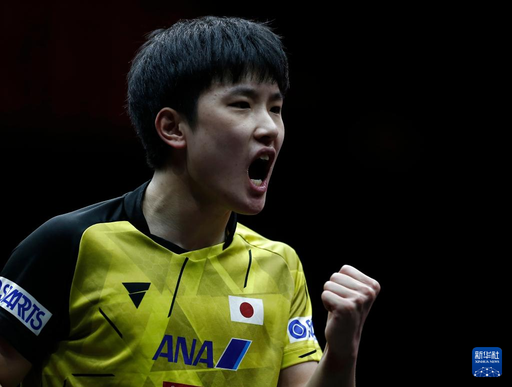 1月4日,张本智和在比赛中庆祝得分。新华社记者 王东震 摄