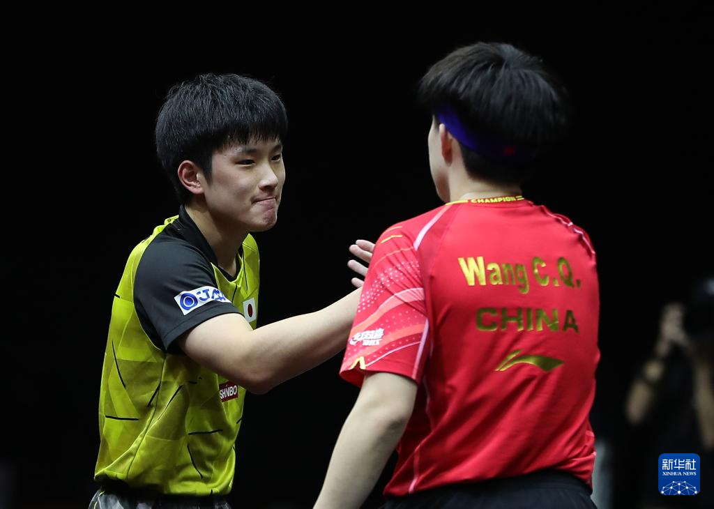 1月4日,王楚钦和张本智和(左)赛后相互致意。新华社记者 王东震 摄