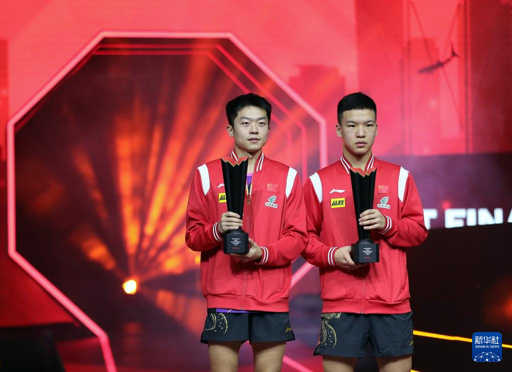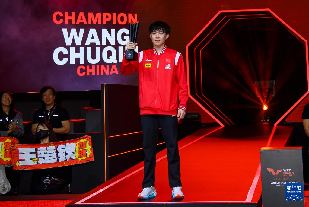 1月5日,男单冠军王楚钦在颁奖仪式上。新华社发(尼库摄)