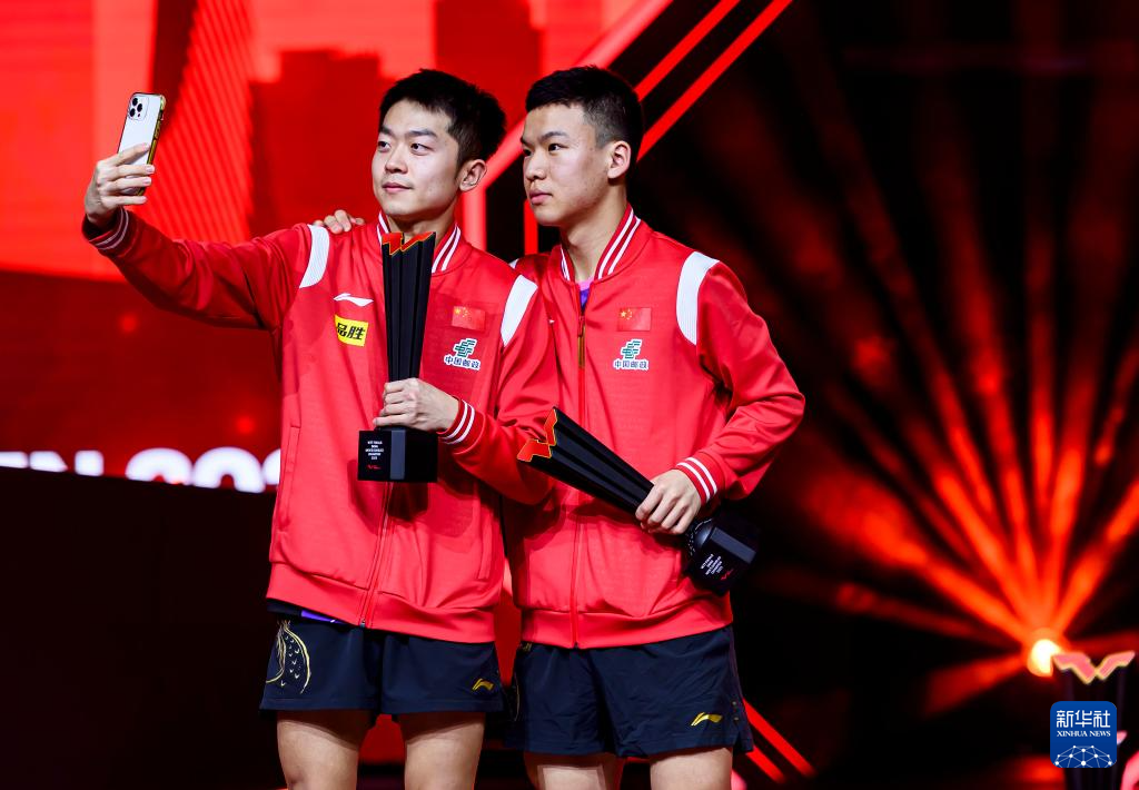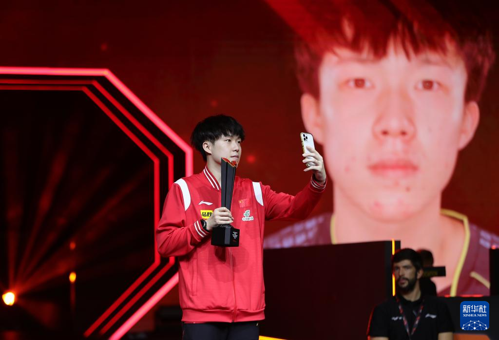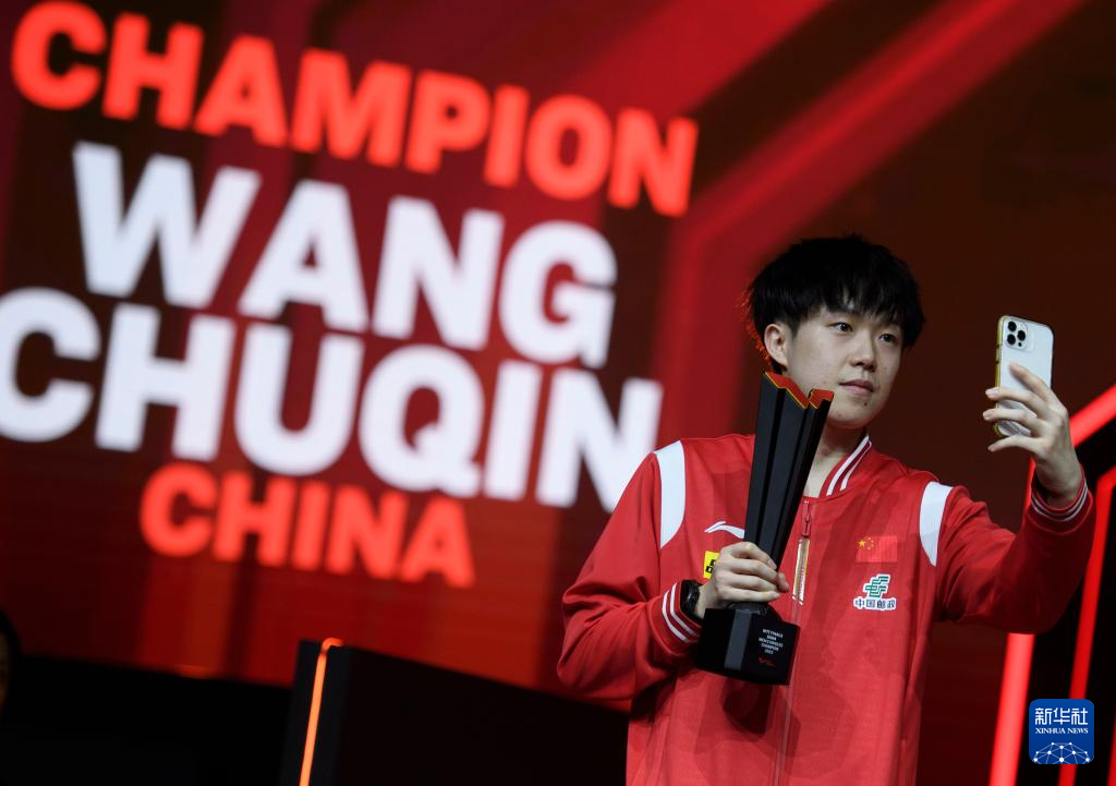 1月5日,男单冠军王楚钦在颁奖仪式上拍照。新华社发(尼库摄)