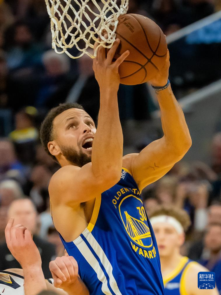 1月4日,勇士队球员库里在比赛中上篮。新华社发(董旭东摄)