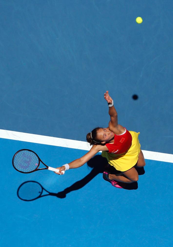 1月3日,中国选手郑钦文在联合杯比赛中发球。新华社发(周丹摄)