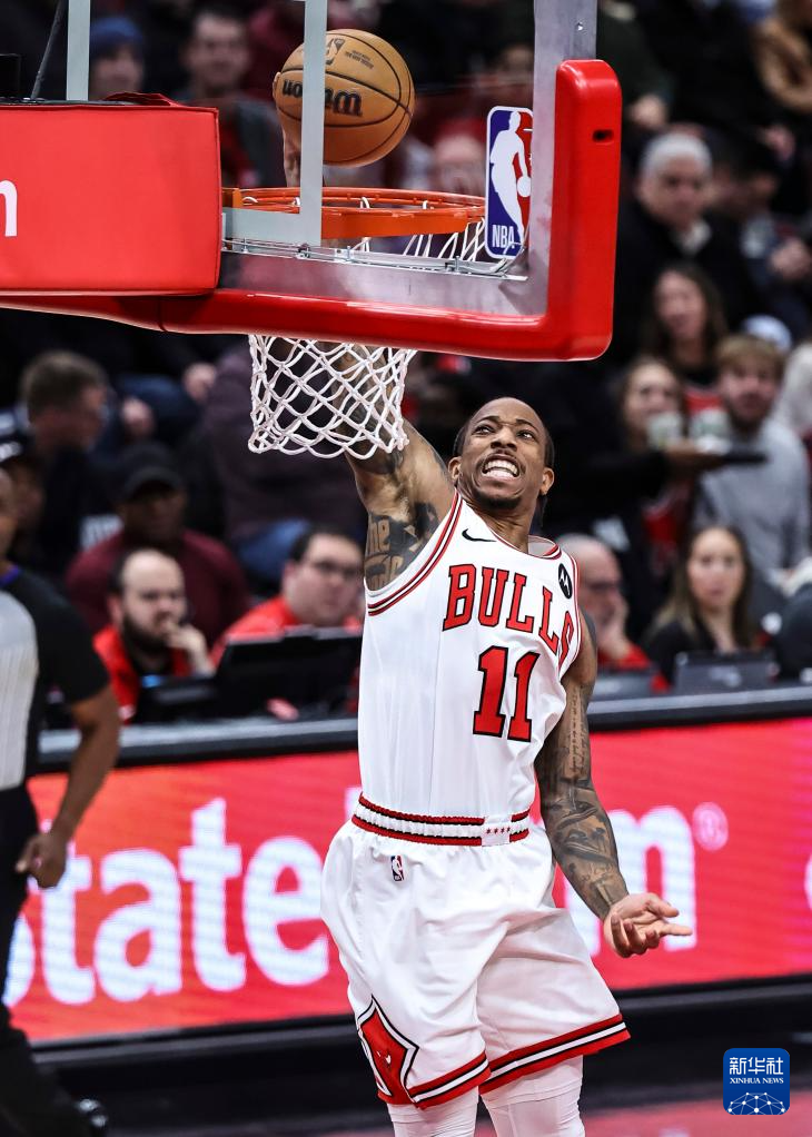 1月5日,公牛队球员德罗赞在比赛中扣篮。新华社发(乔尔·莱纳摄)