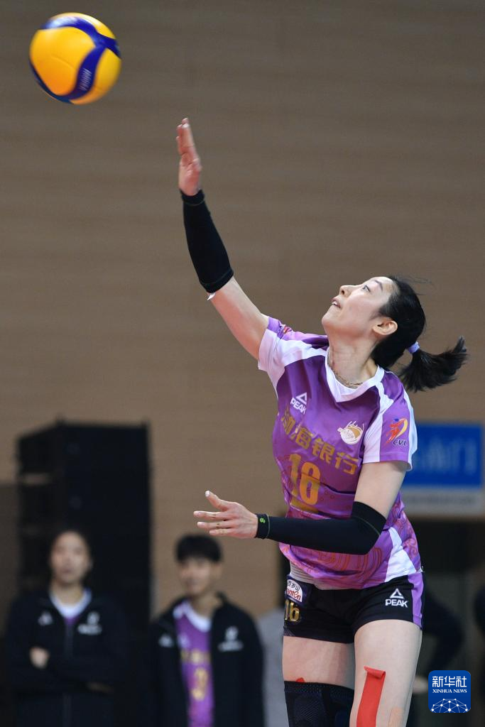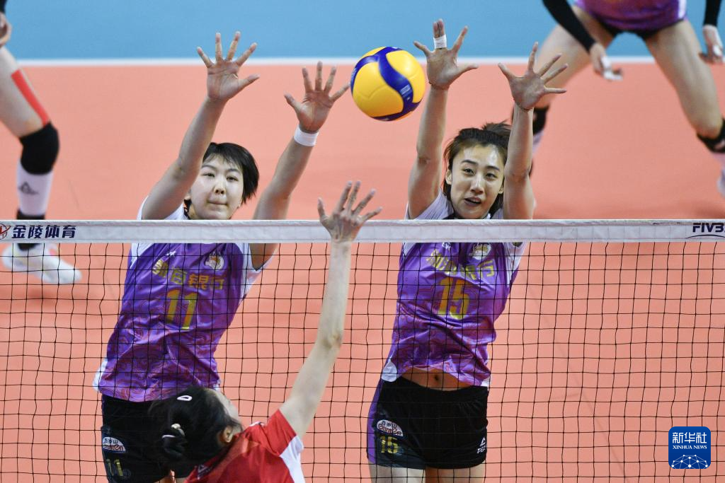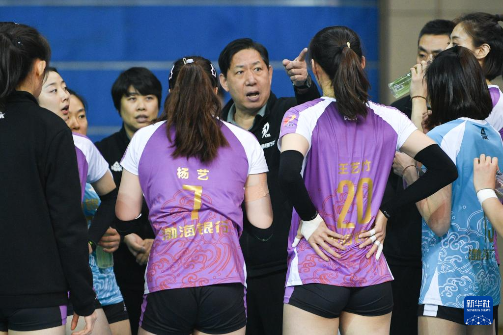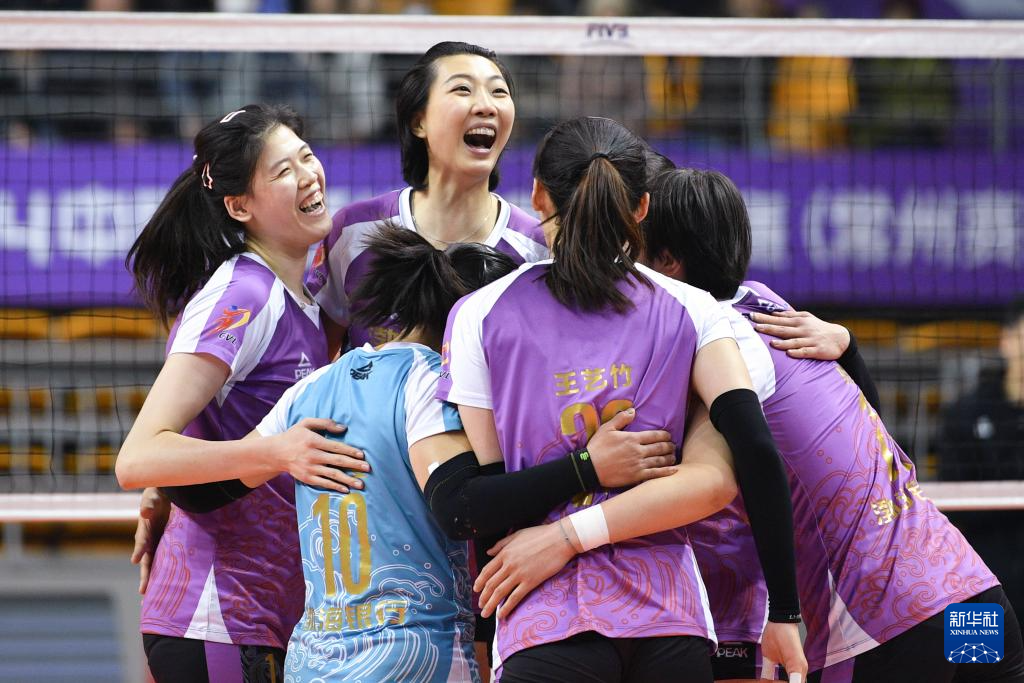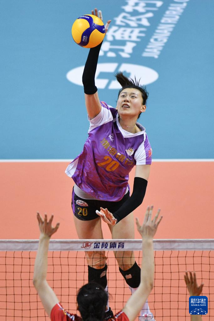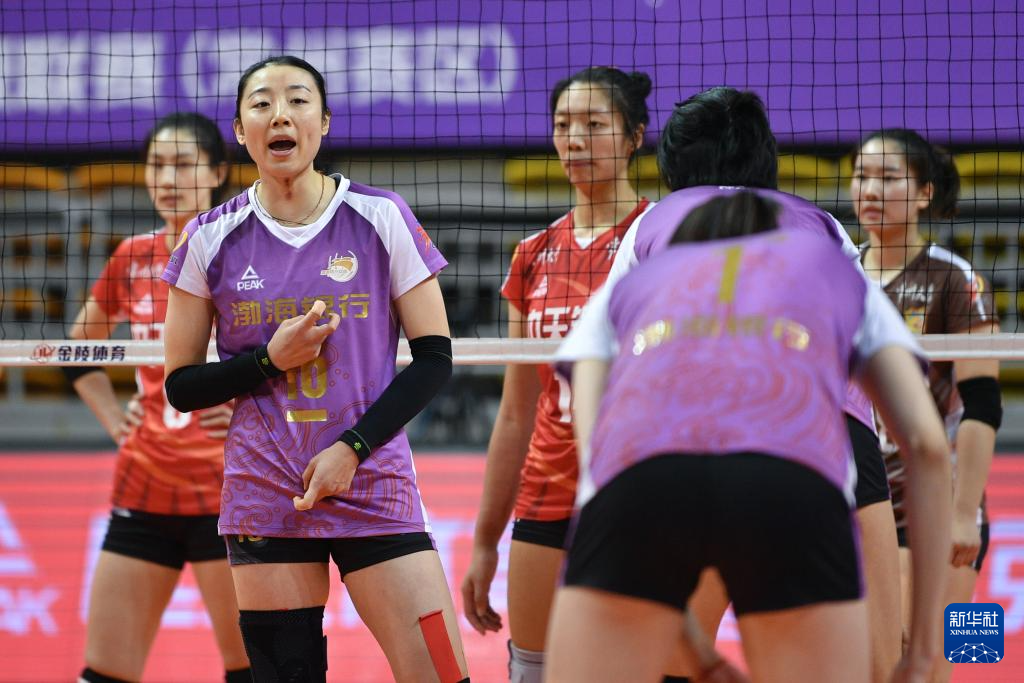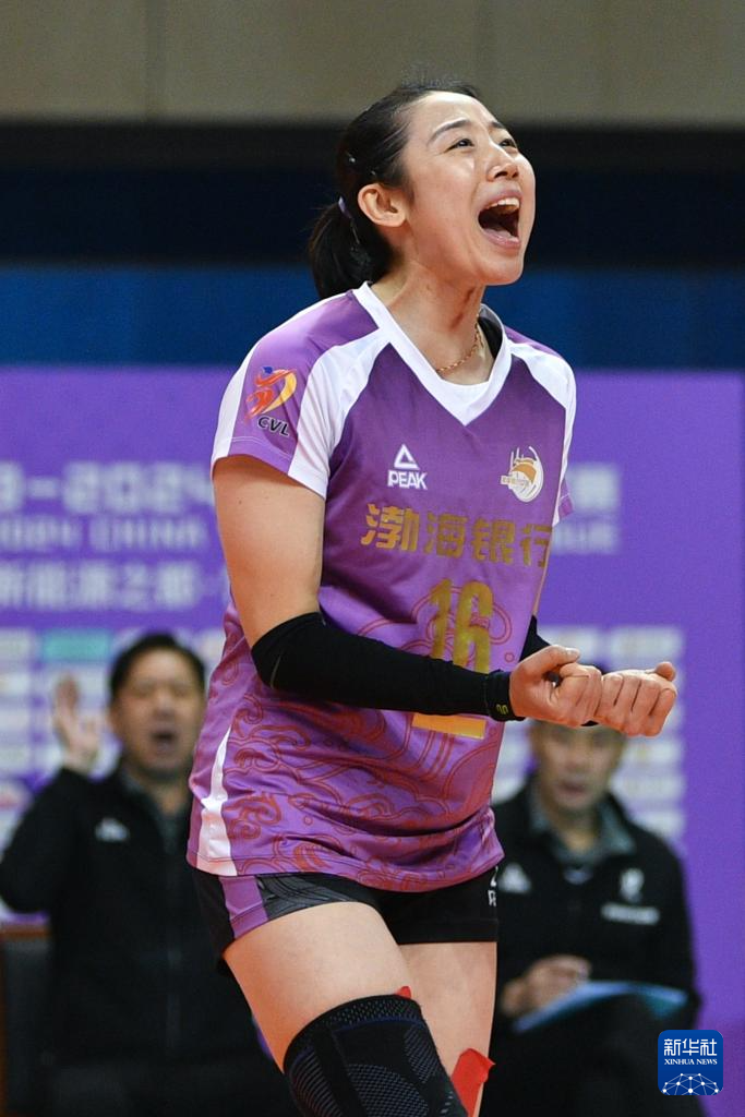 当日,在江苏常州举行的2023-2024赛季中国女排超级联赛第三阶段(半决赛)第一回合比赛中,天津渤海银行队客场3比1战胜江苏中天钢铁队。