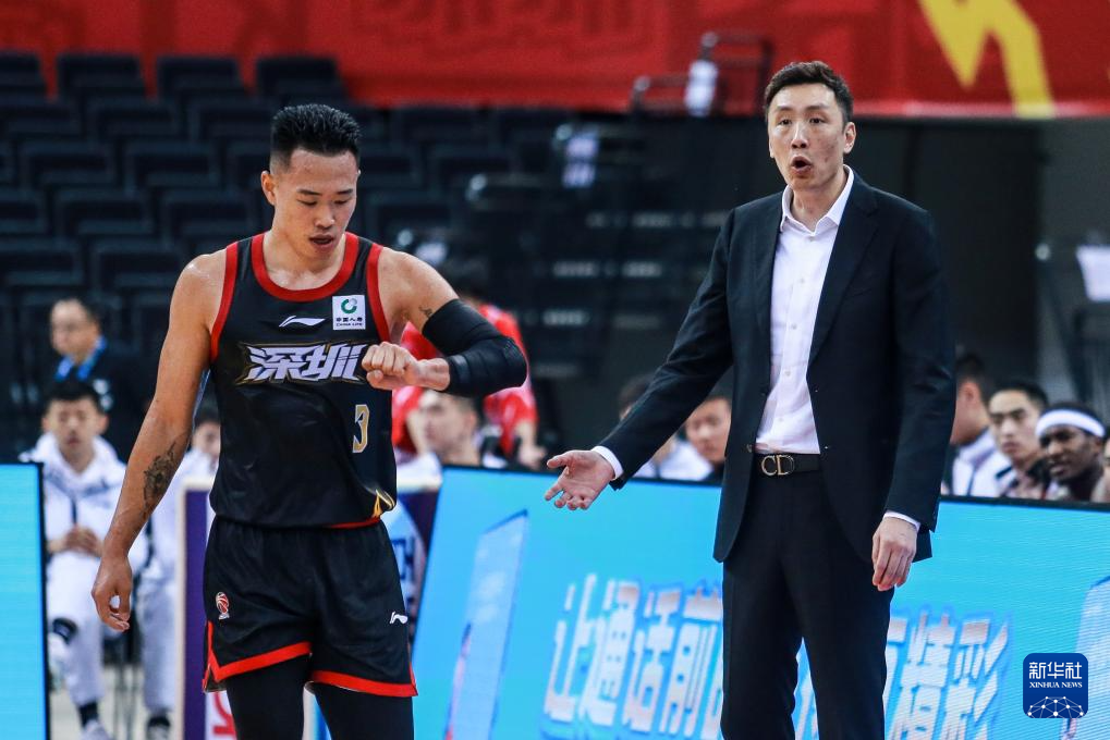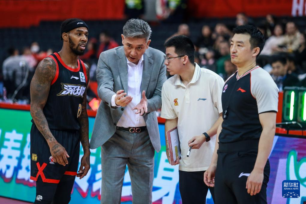 1月6日,深圳马可波罗队主教练郑永刚(左二)在场边指导。