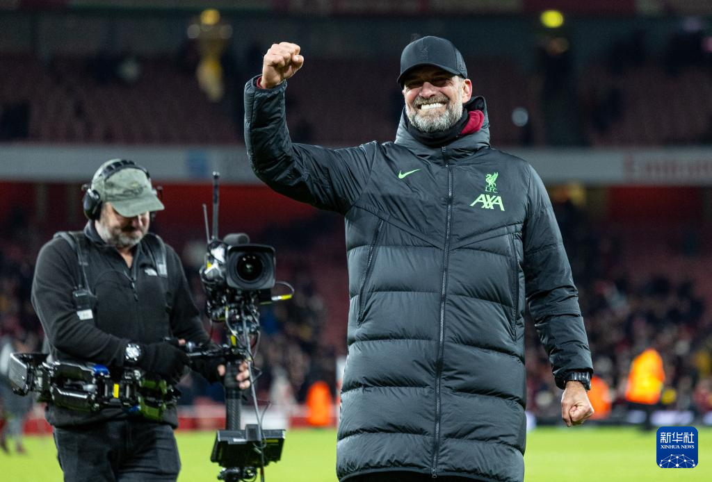 1月7日,利物浦队主帅克洛普(右)在比赛后庆祝胜利。新华社发