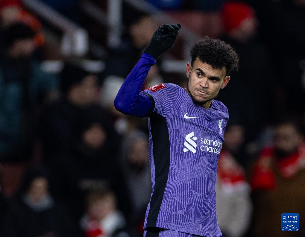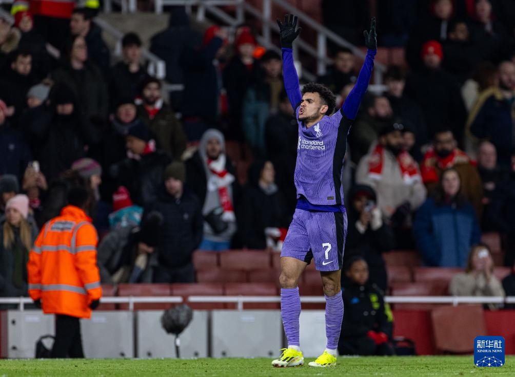 1月7日,利物浦队球员迪亚兹在进球后庆祝。新华社发