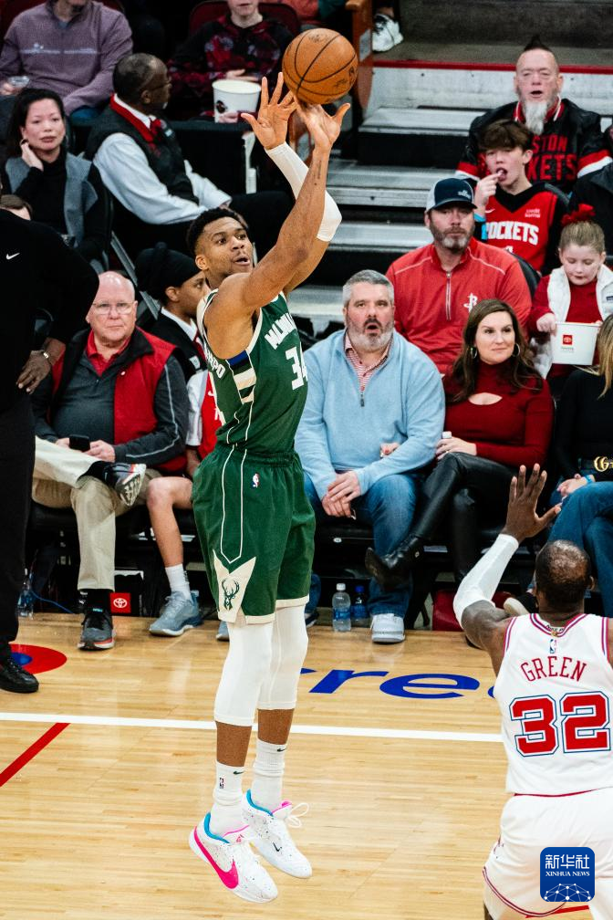 1月6日,雄鹿队球员安特托昆博在比赛中投篮。新华社发(陈晨摄)