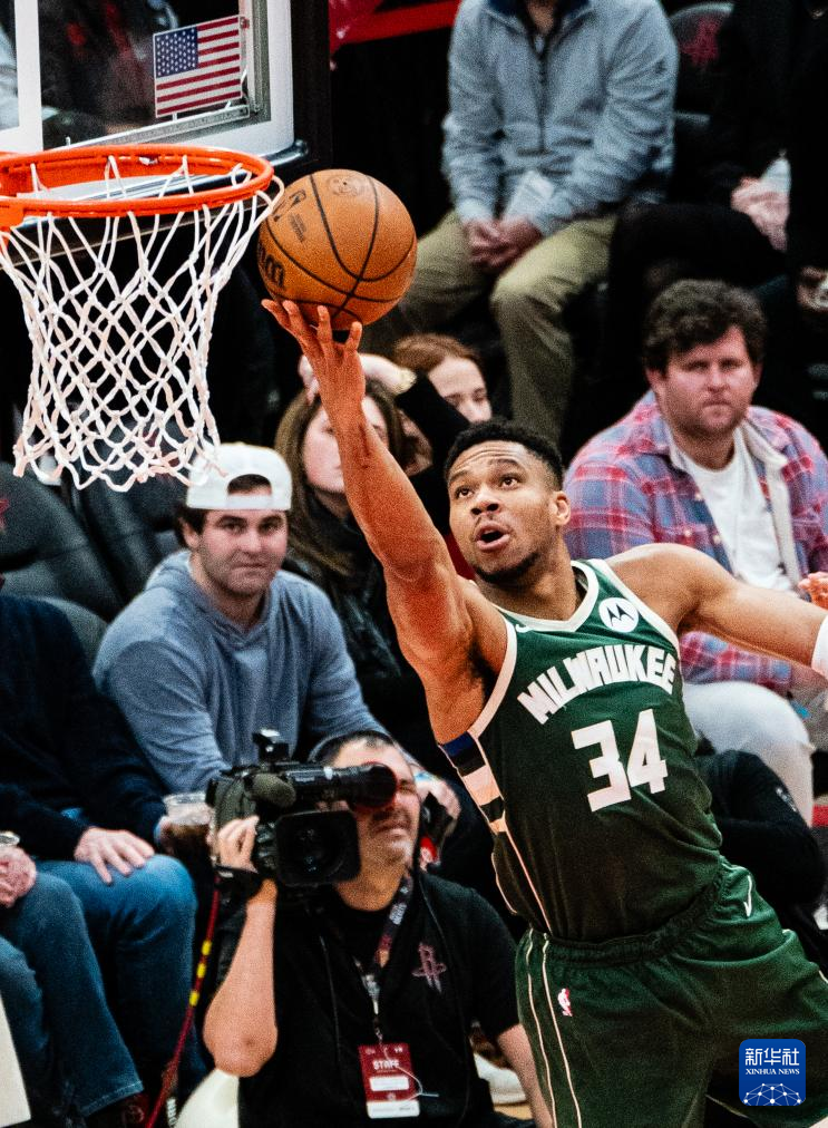 1月6日,雄鹿队球员安特托昆博在比赛中上篮。新华社发(陈晨摄)