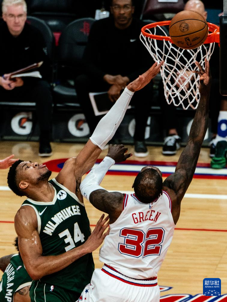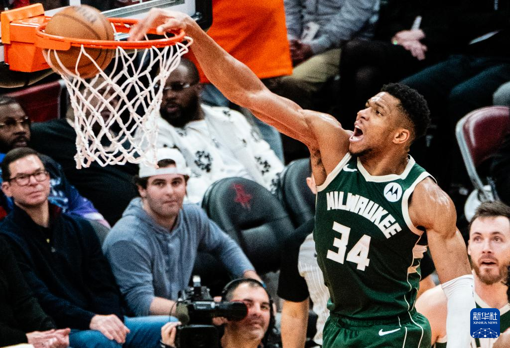 1月6日,雄鹿队球员安特托昆博在比赛中扣篮。新华社发(陈晨摄)