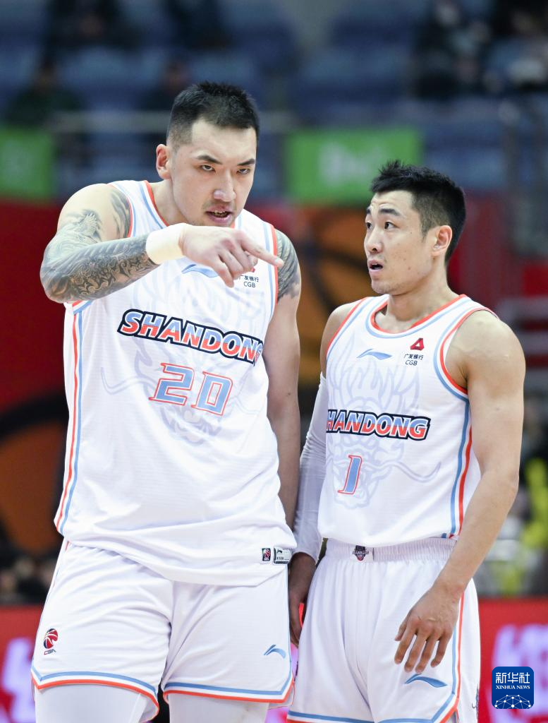 1月8日,山东高速队球员陶汉林(左)与队友高诗岩在比赛中交流。新华社发(王须中摄)