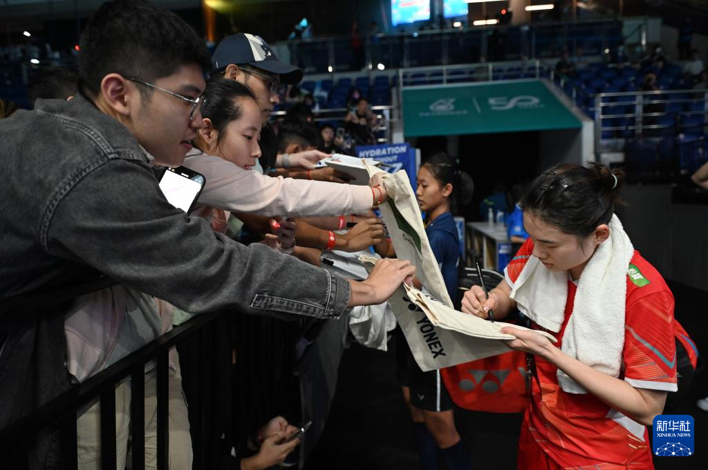 1月9日,韩悦赛后为球迷签名。新华社发(张纹综摄)