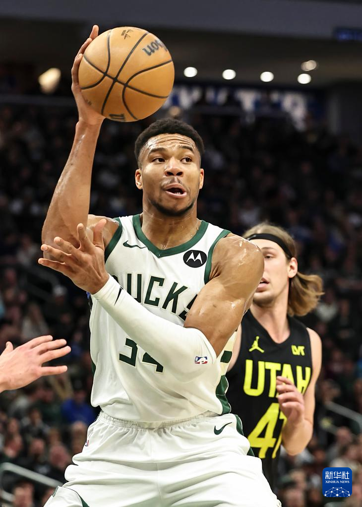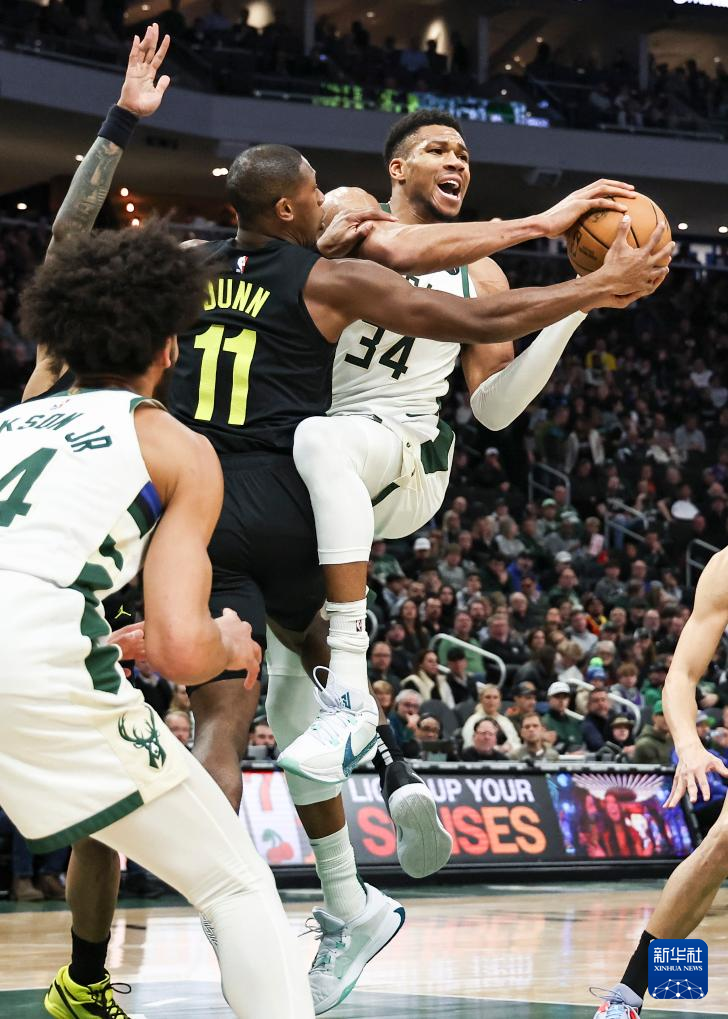 1月8日,雄鹿队球员安特托昆博在比赛中传球。新华社发(乔尔·莱纳摄)