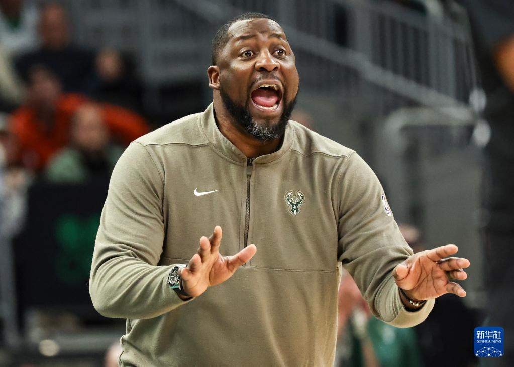 1月8日,雄鹿队主教练格里芬在比赛中指挥。新华社发(乔尔·莱纳摄)