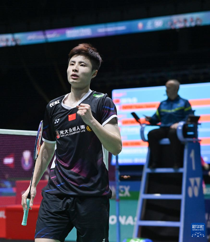 1月11日,石宇奇在比赛中庆祝得分。新华社发(张纹综摄)