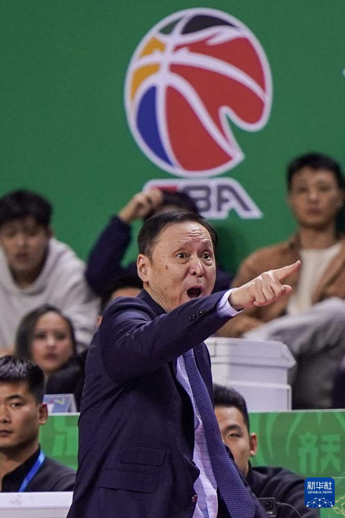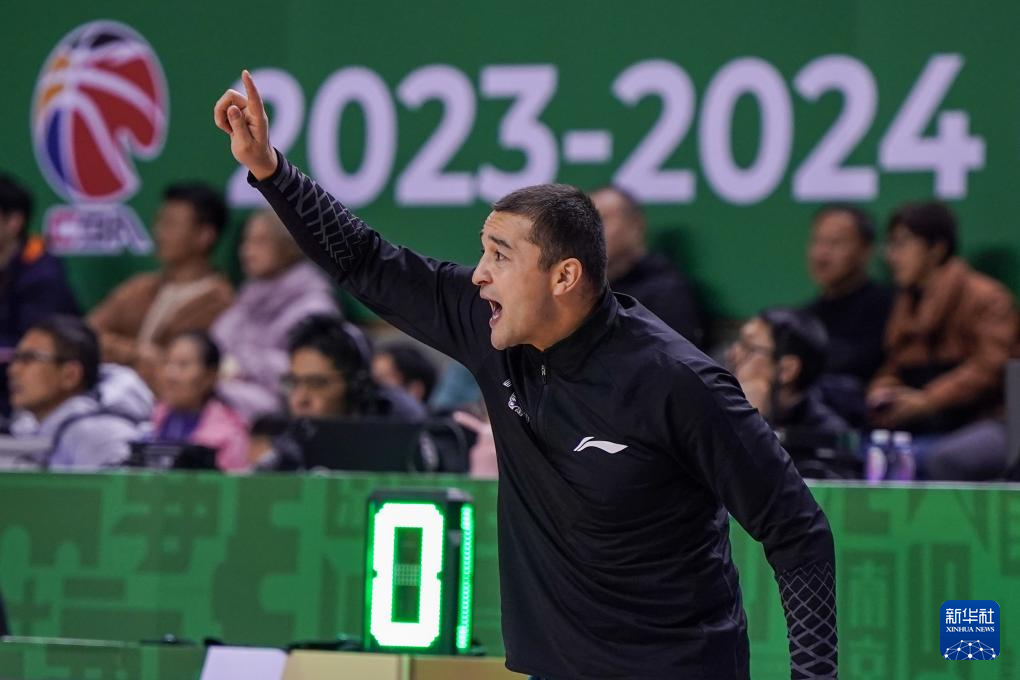 1月10日,南京头排苏酒队球员兼主教练西热力江在场边指挥。新华社记者 李博 摄