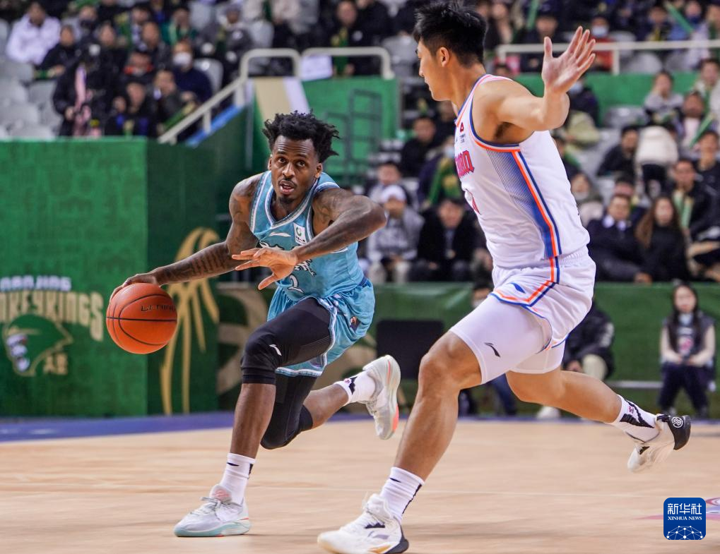 1月10日,南京头排苏酒队球员兼主教练西热力江(右)在比赛中突破。新华社记者 李博 摄