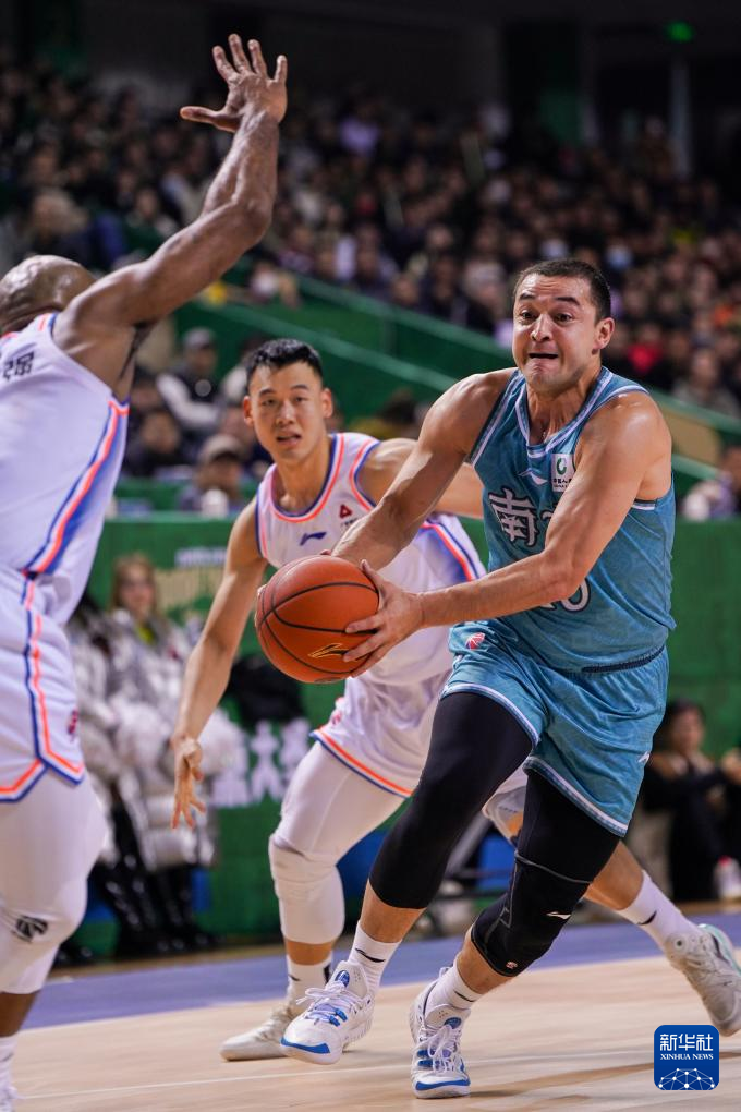 1月10日,南京头排苏酒队球员兼主教练西热力江(右一)在比赛中突破。新华社记者 李博 摄