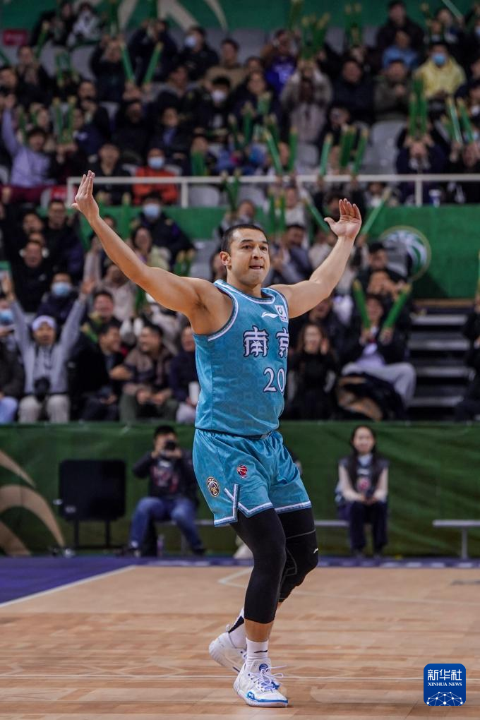 1月10日,南京头排苏酒队球员兼主教练西热力江在比赛中庆祝得分。新华社记者 李博 摄