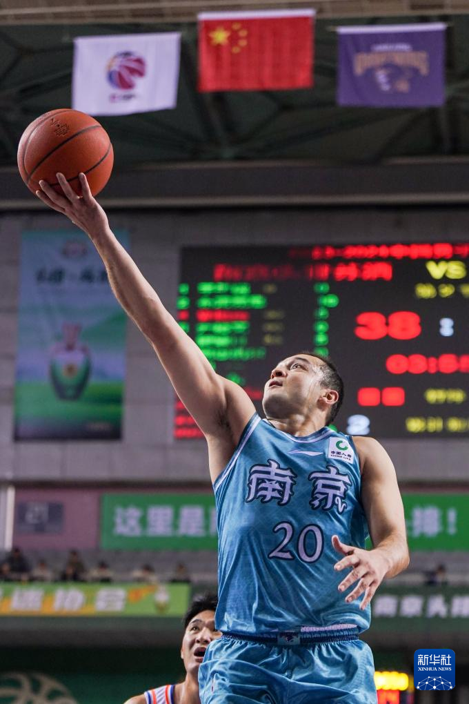 1月10日,南京头排苏酒队球员兼主教练西热力江在比赛中上篮。新华社记者 李博 摄