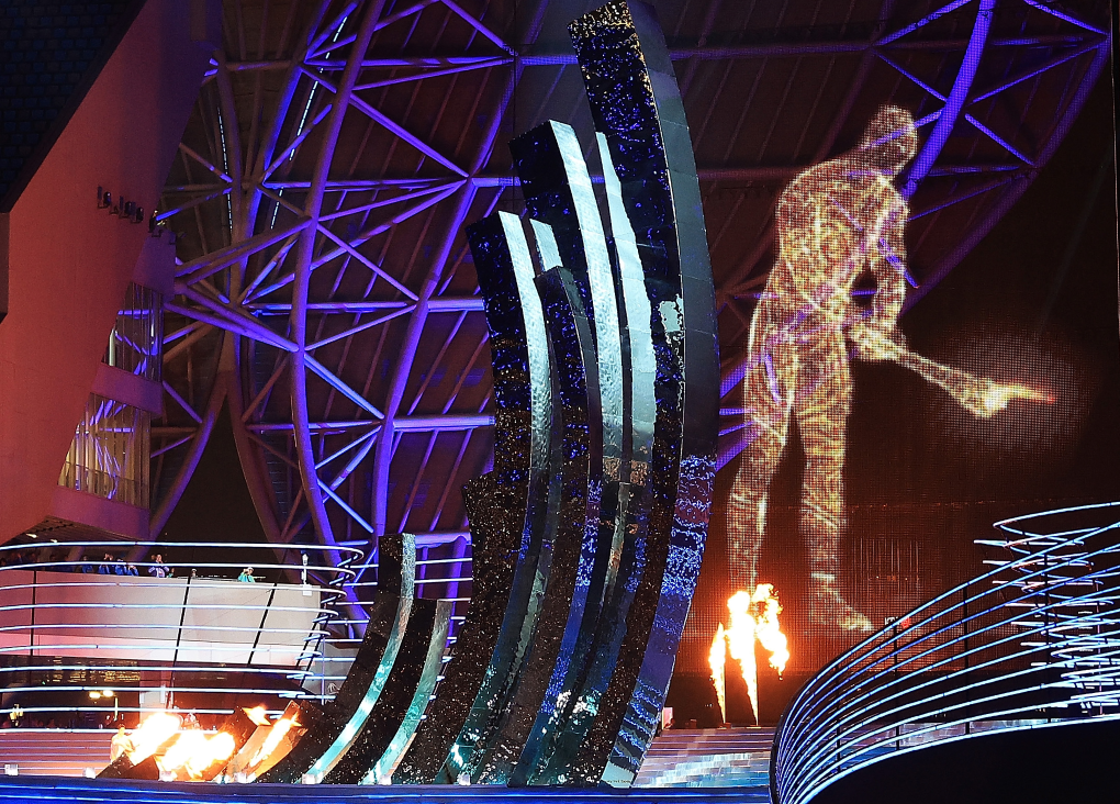 ↑2023年9月23日,数字火炬手在杭州亚运会开幕式上点燃主火炬。