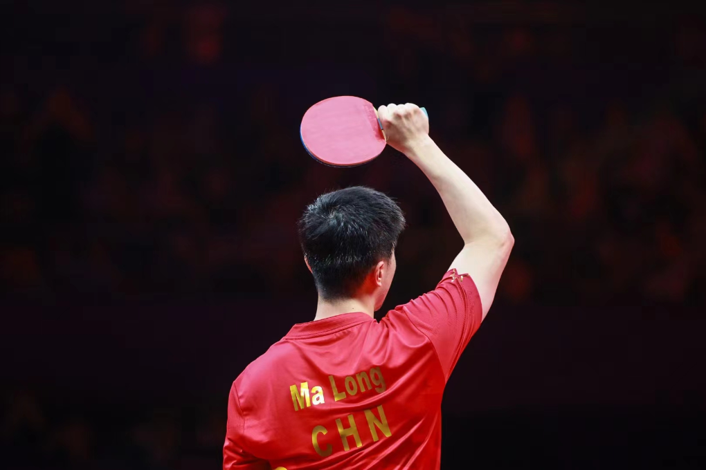 ↑2023年9月26日,中国队选手马龙在比赛中。他以3比0战胜韩国队选手朴康贤。