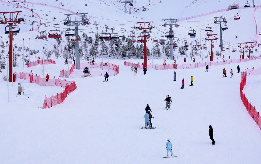 2023年12月31日,雪友在新疆阿勒泰将军山国际滑雪度假区滑雪。新华社记者 张啸诚 摄