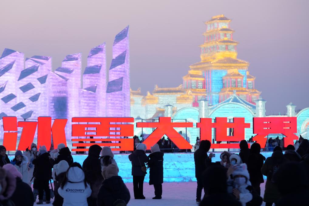 1月5日,游客在哈尔滨冰雪大世界园区内游玩。新华社记者 王建威 摄