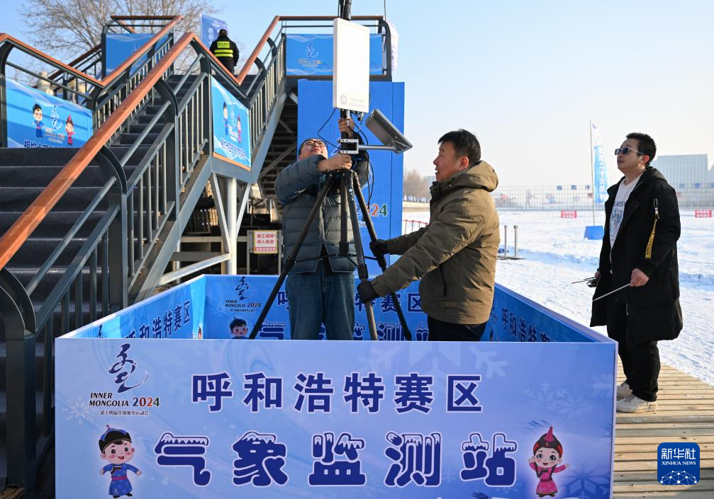 1月10日,工作人员在东河冰场设置气象监测设备。新华社记者 贝赫 摄