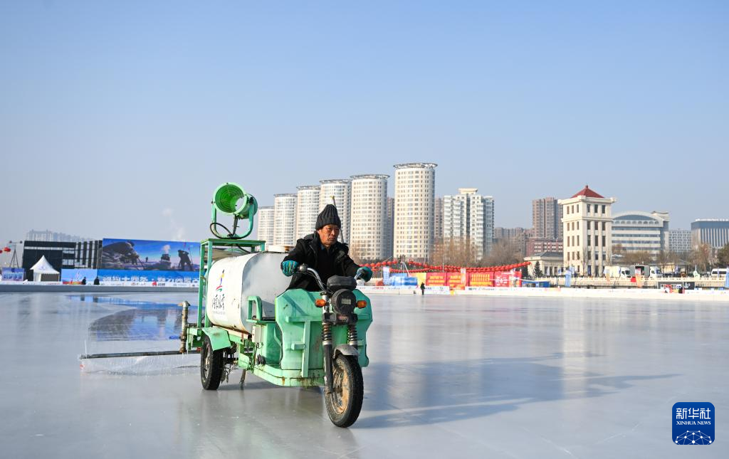1月10日,工作人员在东河冰场浇冰。新华社记者 贝赫 摄