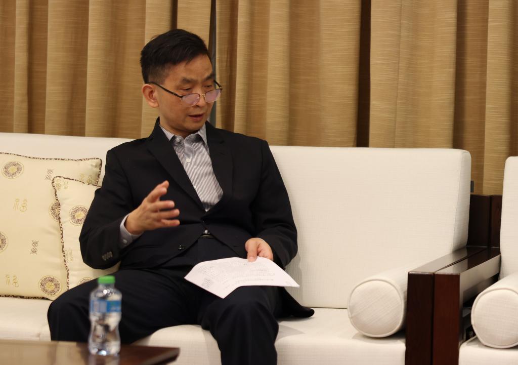 中国驻卡塔尔大使曹小林接受新华社记者采访。新华社记者 贾浩成 摄