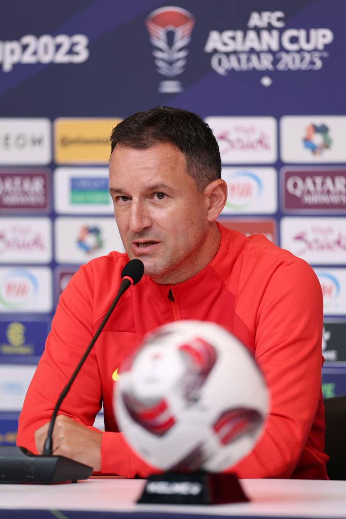 1月12日,中国队主教练扬科维奇在发布会上。新华社记者 贾浩成 摄