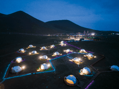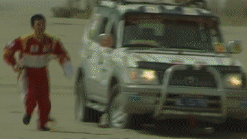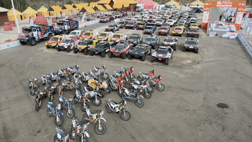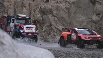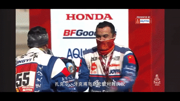 在2021年达喀尔拉力赛收车台大秀新疆舞