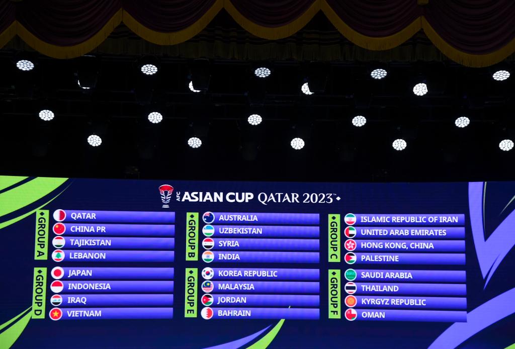2023年5月11日,2023年卡塔尔亚洲杯足球赛抽签仪式在卡塔尔多哈举行,中国男足国家队与卡塔尔队、塔吉克斯坦队、黎巴嫩队同分在A组。新华社发(尼库摄)