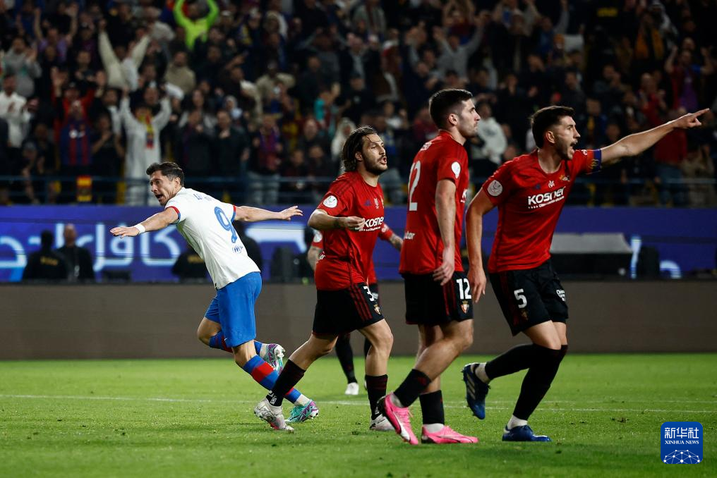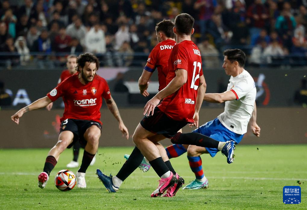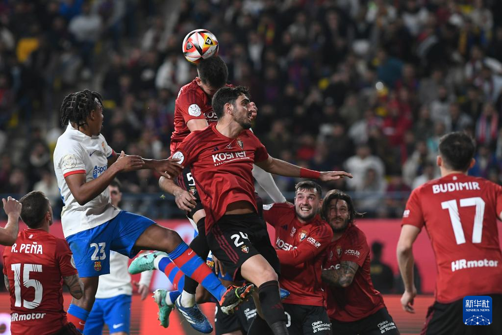 当日,在沙特阿拉伯利雅得举行的西班牙超级杯足球赛半决赛中,巴塞罗那队2比0战胜奥萨苏纳队,晋级决赛。