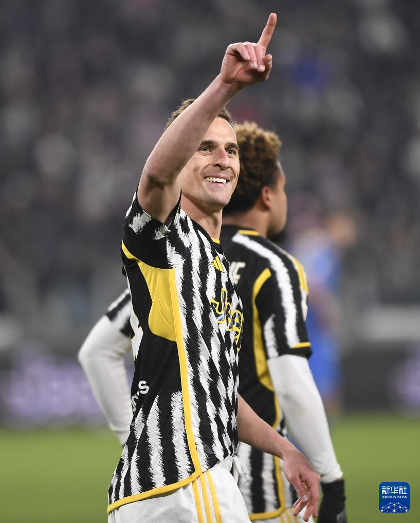 当日,在2023-2024赛季意大利杯足球赛四分之一决赛中,尤文图斯队主场4比0战胜弗罗西诺内队,晋级四强。