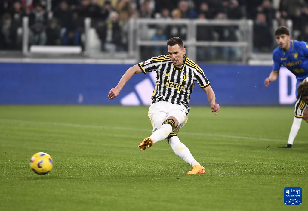 1月11日,尤文图斯队球员米利克在比赛中射门得分。新华社发(费代里科·塔尔迪托摄)
